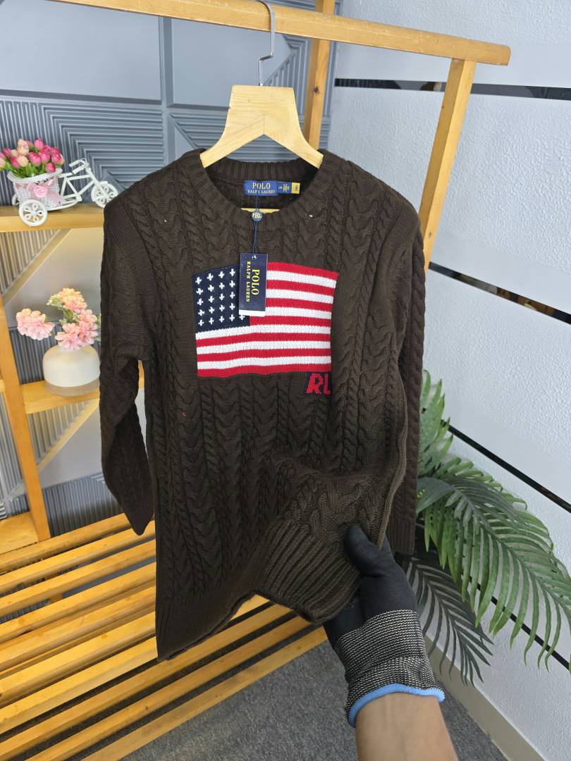 • Ralph_Lauren Imported Brown Super Premium Half Zipper Hoodie F3341-BR